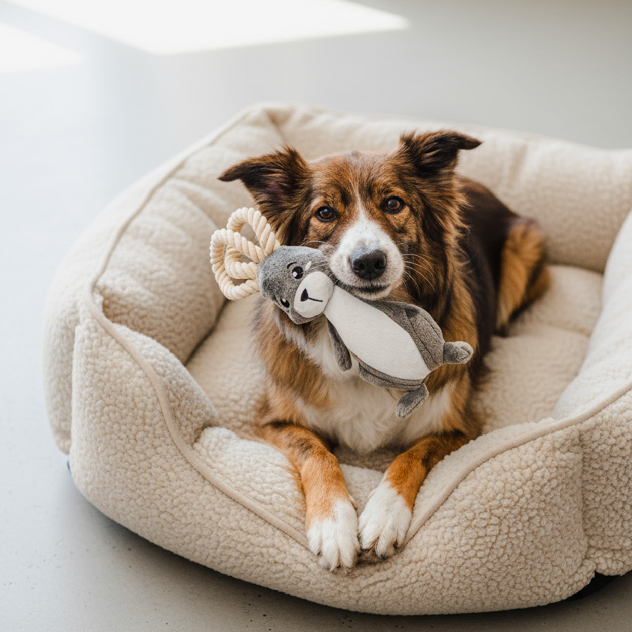 Hop into playtime with Artie the Arctic Hare! Featuring a squeaker and sturdy rope details, Artie makes every tug and toss game extra exciting. Made from 100% recycled plastic, he's a snowy sweetheart on a mission to save the planet, one plastic bottle at a time.