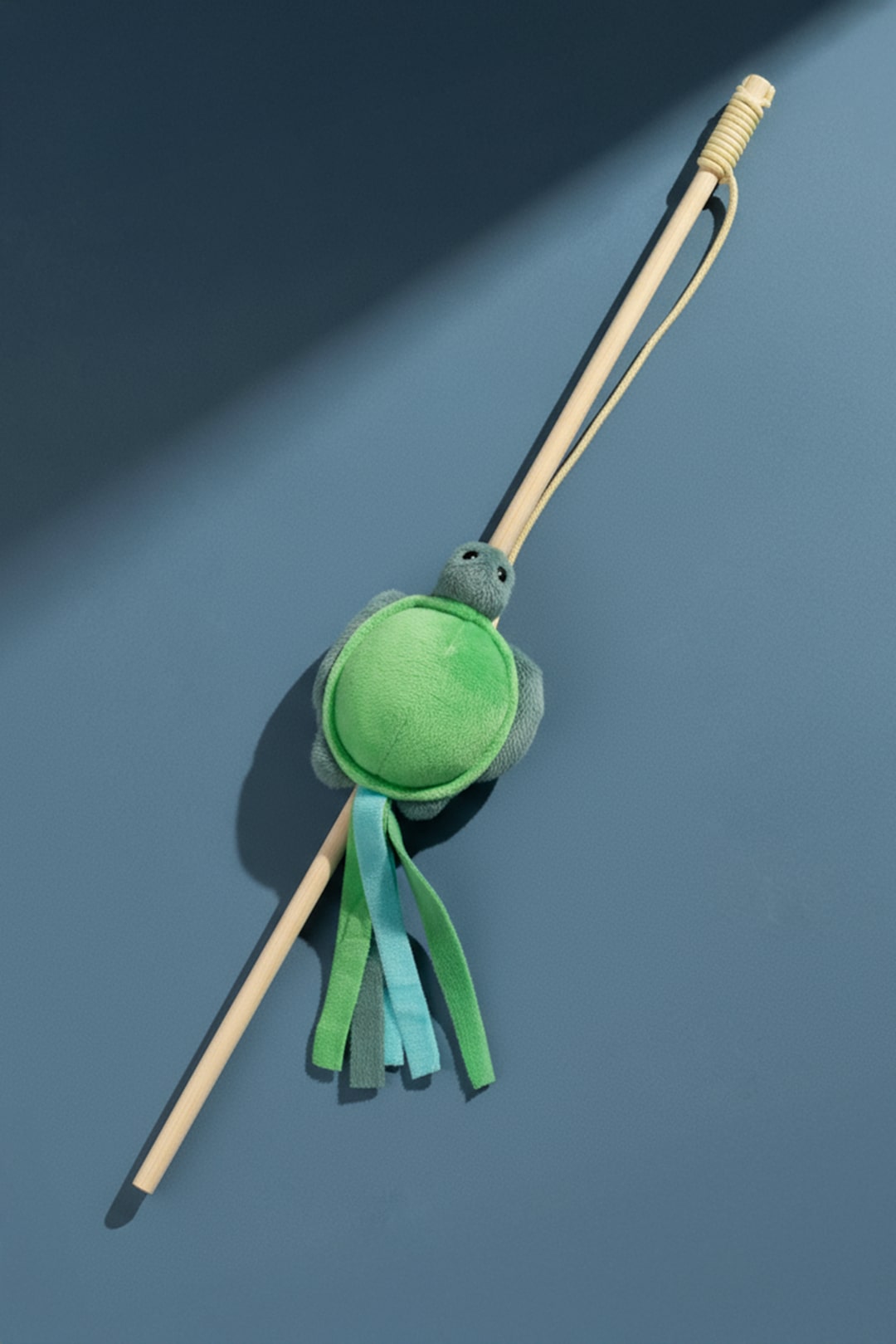 Tilly the Turtle Teaser adds a natural, tactile element to playtime. Made from 100% recycled plastic bottles, this teaser features a soft turtle charm filled with catnip and fabric streamers that move fluidly to capture your cat’s attention. Its clean, minimal design and rich green tones make it both functional and visually refined.